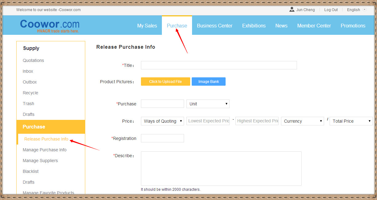 1. Members login and publish purchase information.